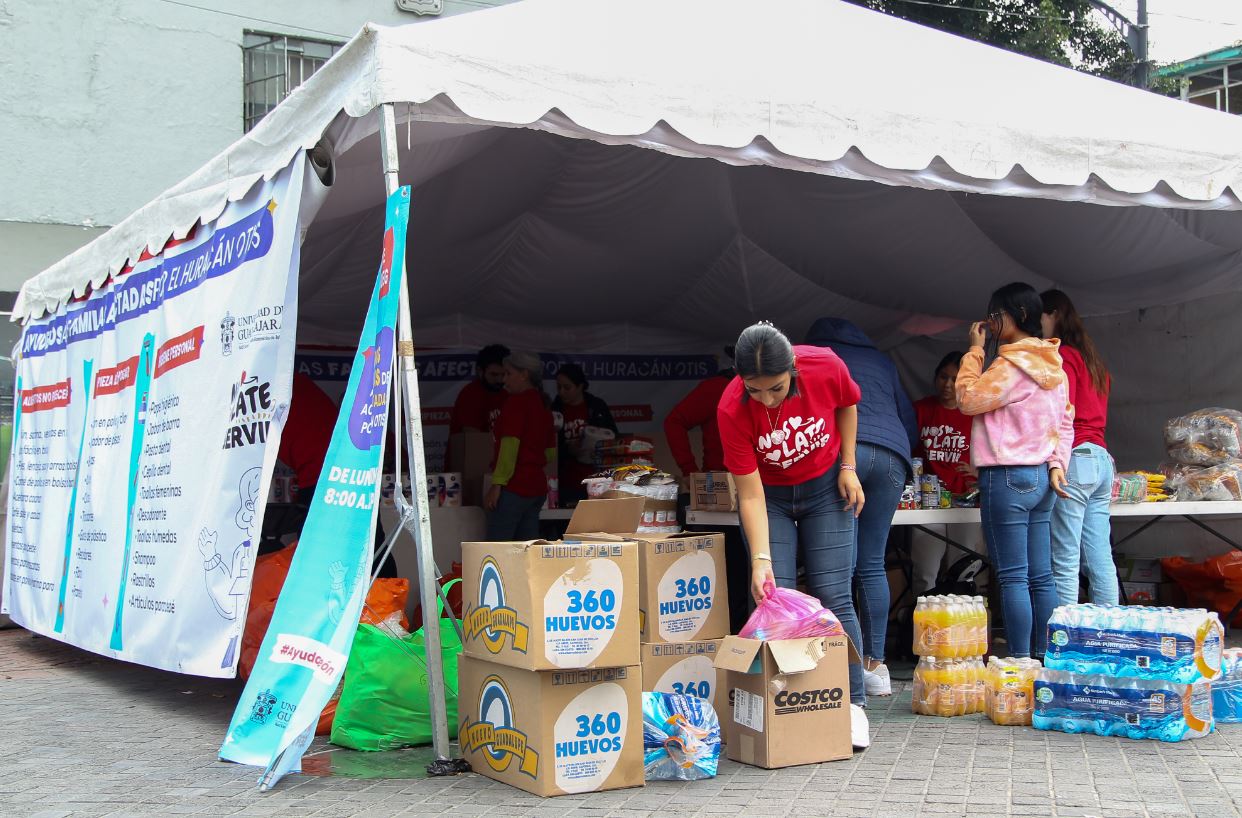 La Universidad de Guadalajara (UdeG) abrirá centros de acopio en los centros universitarios y en la Rambla Cataluña para recolectar productos de limpieza e higiene personal, así como alimentos no perecederos, para personas damnificadas por las lluvias e inundaciones en Veracruz, San Luis Potosí, Hidalgo, Querétaro y Puebla.