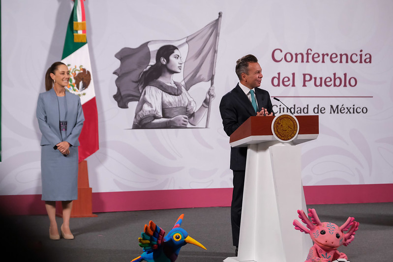 En la conferencia matutina realizada en Palacio Nacional, Pablo Lemus Navarro, compartió la presentación con sus homólogos Clara Brugada y Samuel García, titulares de entidades sedes mundialistas