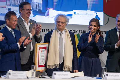 Antes de que se realizara la entrega del Premio FIL en Lenguas Romances, Marcelo Ebrard, secretario de Economía, otorgó a Planter, y a Schulz, un certificado (el primero en México, precisó) por el proceso de excelencia bajo el que la Feria se ha convertido en la más importante de las letras hispanas, en representación de la presidenta, Claudia Sheinbaum.