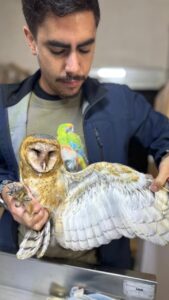 Elementos de la Unidad de Rescate de Fauna Silvestre de Tlajomulco resguardan un polluelo de lechuza que fue localizado en el municipio de Zacoalco de Torres, esto luego que se recibiera reporte a la línea de emergencia de la dependencia, en el que se informó que el ejemplar aparentemente estaba enfermo o lesionado.